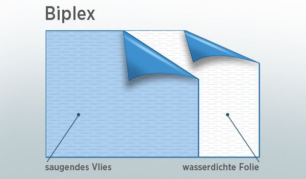 Zweilagiges Material mit saugender Vliesoberseite und wasserdichter PE-Unterseite als optimale Keimbarriere. Gut anzuwenden bei kurzen und etwas längeren Eingriffen.