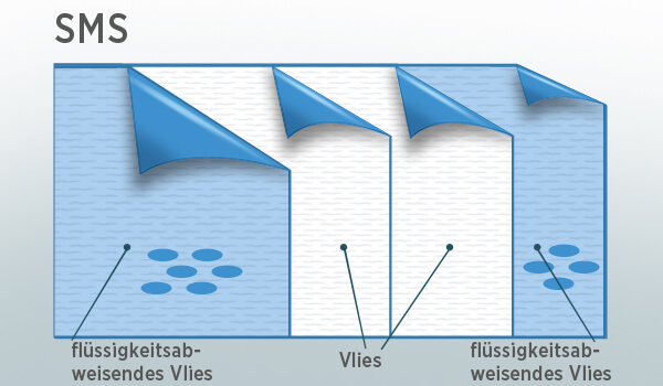 Vierlagiges, flüssigkeitsabweisendes und zugleich atmungsaktives Vlies, anwendbar bei kürzeren Eingriffen. Bevorzugtes Material für OP-Kittel.