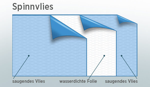Mit zwei saugenden äußeren Vlieslagen und einer wasserdichten PE-Lage in der Mitte eignen sich Tücher aus diesem Material optimal für längere Eingriffe.